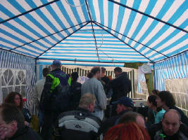 Die Pferdekoppel von letztem Jahr, erwies sich diesmal als trocken. Schließlich hatte es auch nicht Wochen vorher geregnet, wie letztes Jahr. Der Wetterbericht meldete diesmal zwar keine Wolkenbrüche, dafür aber Temperaturen um den Gefrierpunkt. Auch nicht gut, aber besser wie zu starker Regen. Denn ob alle Leute in den Pavillon gepasst hätten.... fragwürdig.